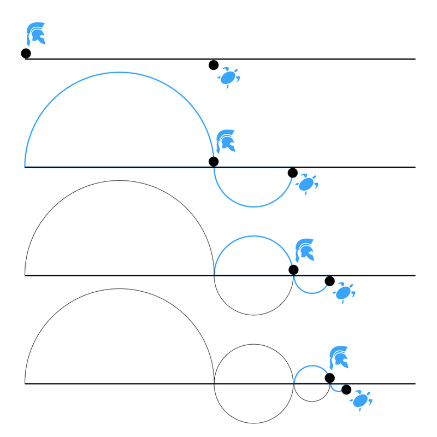 En una carrera, el veloz Aquiles jamás podrá alcanzar a una tortuga lenta que lleva ventaja. En cualquier momento, Aquiles se encuentra a cierta distancia de la tortuga; mientras Aquiles recorre esa distancia, la tortuga se mueve un poco, quizás muy levemente, por lo que Aquiles puede acercarse a la tortuga, pero nunca llegar a alcanzarla. Se puede usar un argumento similar para supuestamente demostrar que una flecha (o una bala) que vuela a gran velocidad nunca alcanzará su objetivo si este huye. Sabemos que es falso, pero es difícil encontrarle una falla al argumento. Diagrama de Martin Grandjean - Trabajo propio, CC BY-SA 4.0, https://commons.wikimedia.org/w/index.php?curid=39999636 Los antiguos griegos debatían si era posible tomar un montón de sustancia y dividirlo en dos. ¿Podemos (al menos conceptualmente) seguir dividiéndolo en porciones cada vez más pequeñas sin afectar su esencia? ¿Es la materia continua? ¿O llega un punto en que no se puede dividir sin alterar su naturaleza esencial? ¿Se presenta la realidad en fragmentos discretos? · Los antiguos griegos Leucipo, Demócrito y Epicuro propusieron esta última y desarrollaron la teoría atómica de la materia, en gran medida para demostrar que Parménides y Zenón estaban equivocados . · El sistema Nyāya-vaiśeṣika de la filosofía india también postuló, cientos de años antes de nuestra era, que las partículas indivisibles eran el componente último de la materia. · Pero ninguno de estos antiguos tenía evidencia directa de que estaban en lo cierto, aunque en cierto modo lo estaban. Si dividimos una jarra de agua por la mitad, eventualmente llegaremos a una sola molécula de agua, H2O . Si la dividimos ya no es agua, sino hidrógeno y oxígeno (o quizás partículas más fundamentales). Pero otros antiguos griegos argumentaron que el universo es continuo. En realidad, es solo por casualidad que los atomistas mencionados anteriormente tuvieran razón, no por la validez de sus argumentos. Los científicos modernos aún debaten si el espacio en sí (y no la materia) es continuo o se presenta en fragmentos discretos. Los científicos modernos aceptan que desconocen la verdadera existencia tras las entidades descritas por la teoría cuántica o la teoría de cuerdas. Sin embargo, comprenden que el universo está compuesto de partículas fundamentales, como electrones y quarks, y fuerzas fundamentales, como la gravedad y el electromagnetismo, fuerzas que son transportadas por partículas como los gravitones y los fotones. Por lo tanto, algunos científicos podrían plantear la hipótesis de que el universo no es uno, sino múltiple, lleno de cambios e impermanencia, y quizás discreto, pero estas ideas podrían revisarse a medida que surjan más evidencias. Los científicos admiten que nunca estarán seguros de comprender completamente la naturaleza última del universo, y ciertamente no la tienen ahora mismo. Las religiones y filosofías tradicionales tienen nociones contradictorias, y no tenemos motivos para creer que una u otra sea verdadera. 1.2.4.2 No sabemos si la naturaleza última de la realidad es una o múltiple, estática o dinámica, continua o discreta, pero en la actualidad es incognoscible y tal vez, en última instancia, inexpresable o incomprensible. más (más adelante)